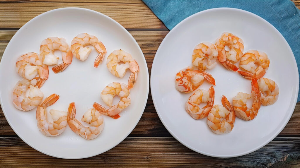磷酸鹽處理過的蝦仁吃起來較水脆,缺少纖維感和Q彈的口感。未經處理的蝦仁較緊實,有紋路感,咬下去有明顯的肉質感。 - 烹煮後變化:
